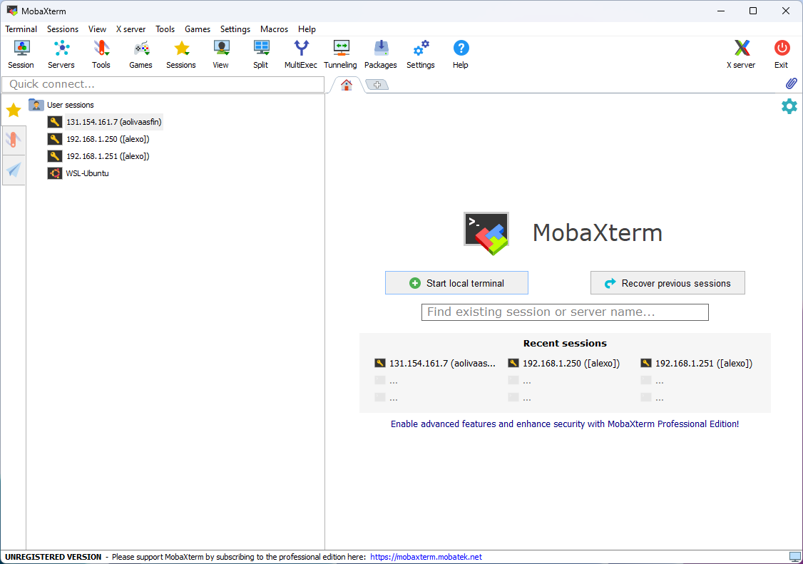 To connect to the UI you can now double-click on the corresponding entry in the left panel of the main MobaXterm window.